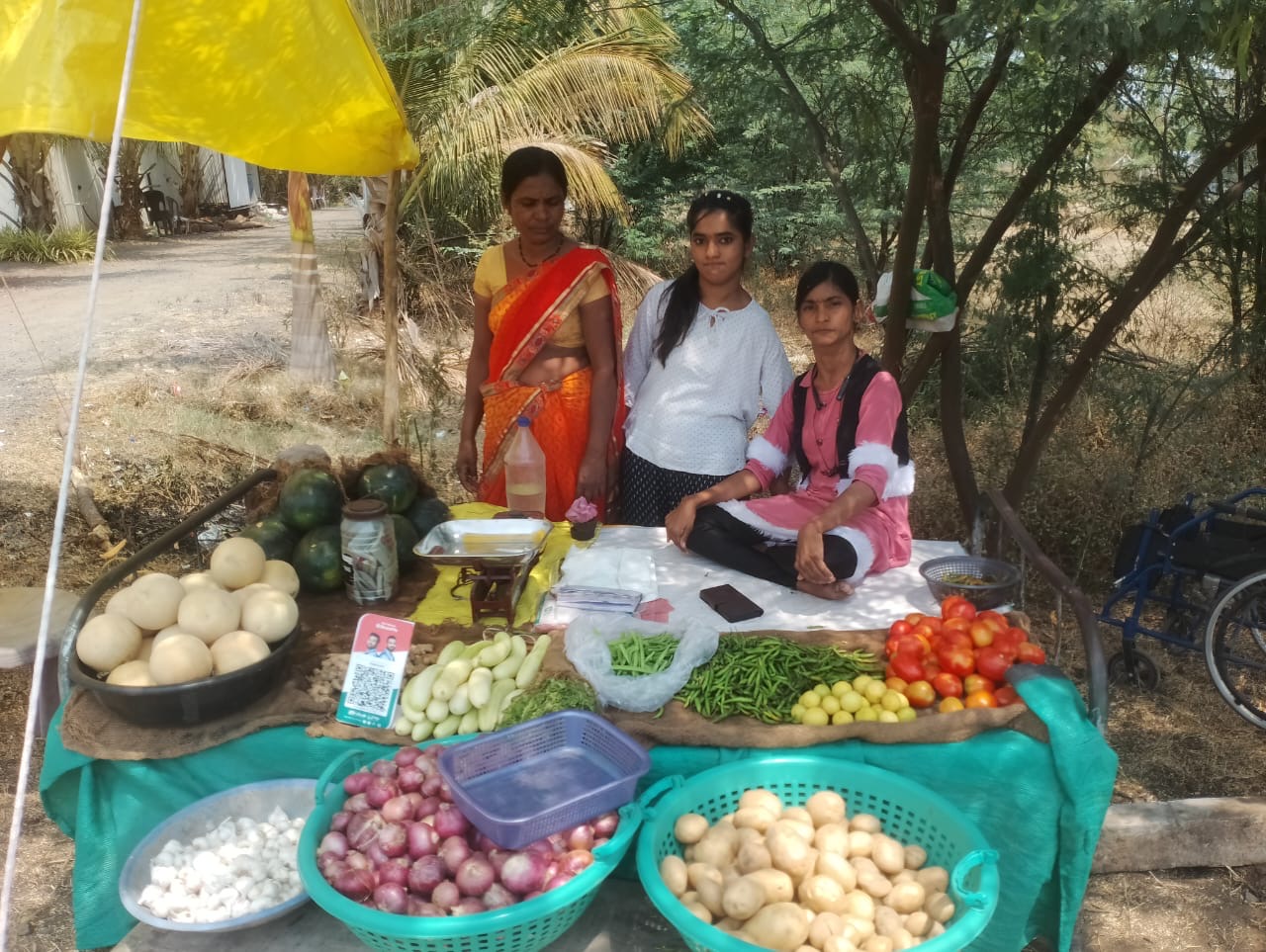 Die ehemalige Schülerinnen Swati und Ashwini haben mit Unterstützung von Sampark (ein Projekt für Kinder und Jugendliche mit Behinderungen auf dem Land) einen kleinen Gemüseladen eröffnet.