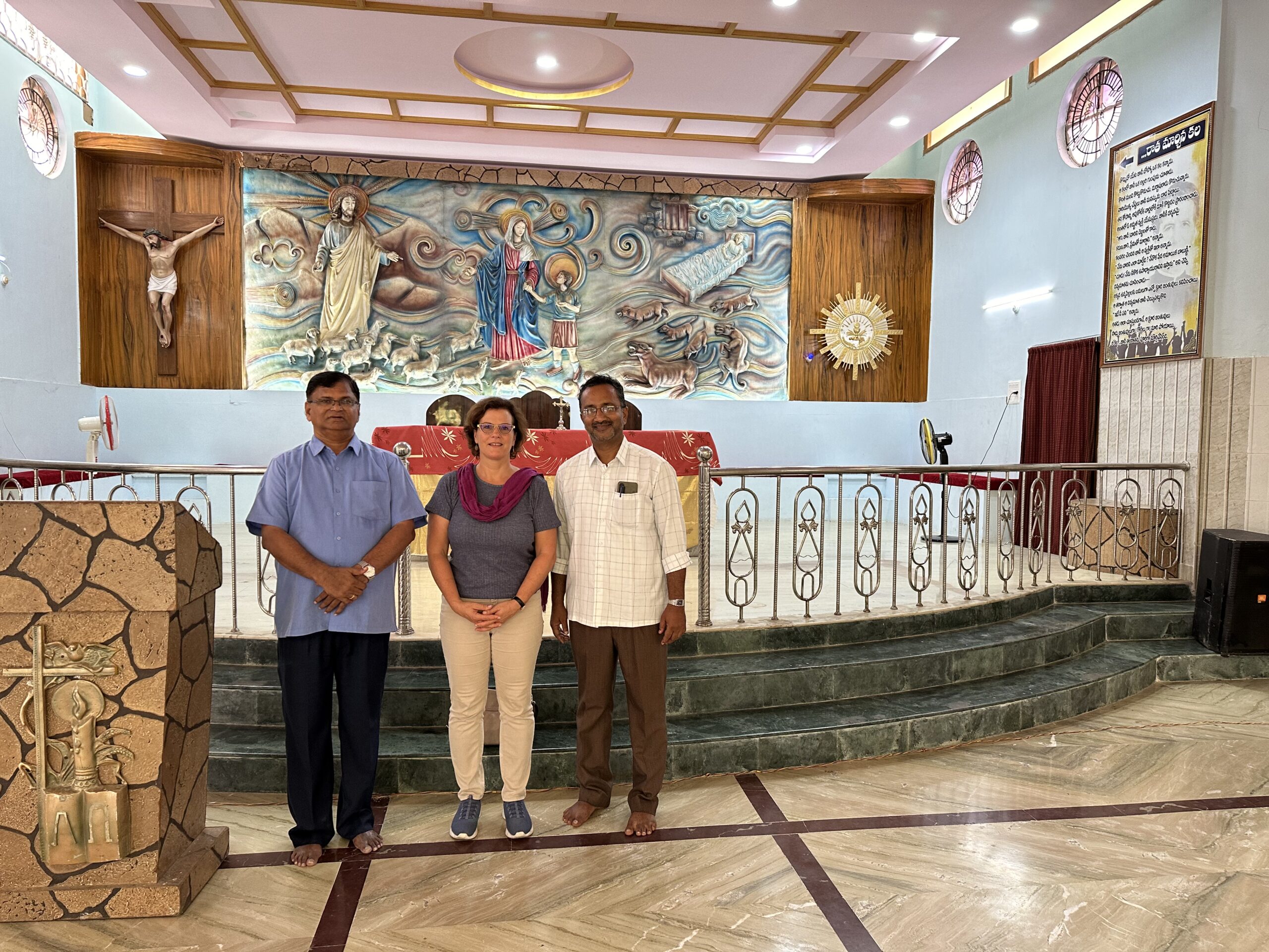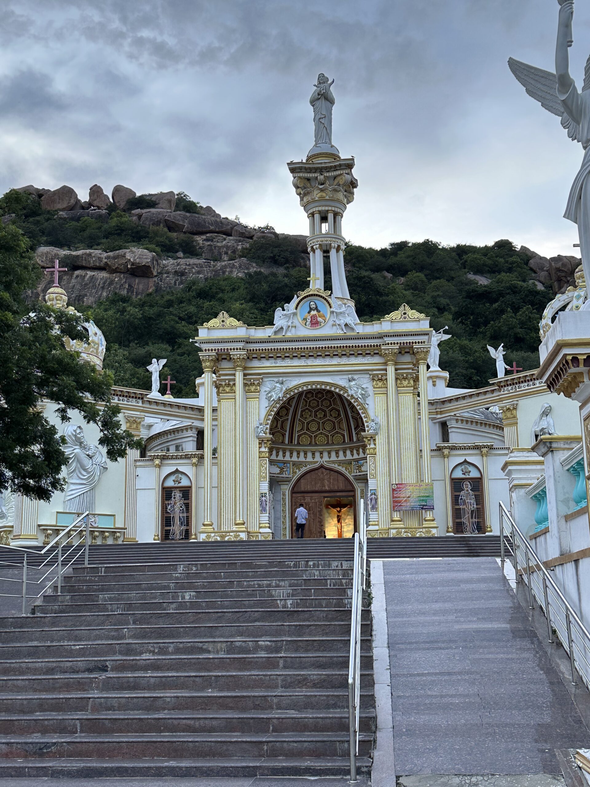 Während der Wartezeit haben sie mir den Marien-Schrein gezeigt. Der Marian Shrine in Nalgonda ist ein bekannter Wallfahrtsort und Heiligtum, das der Jungfrau Maria gewidmet ist.