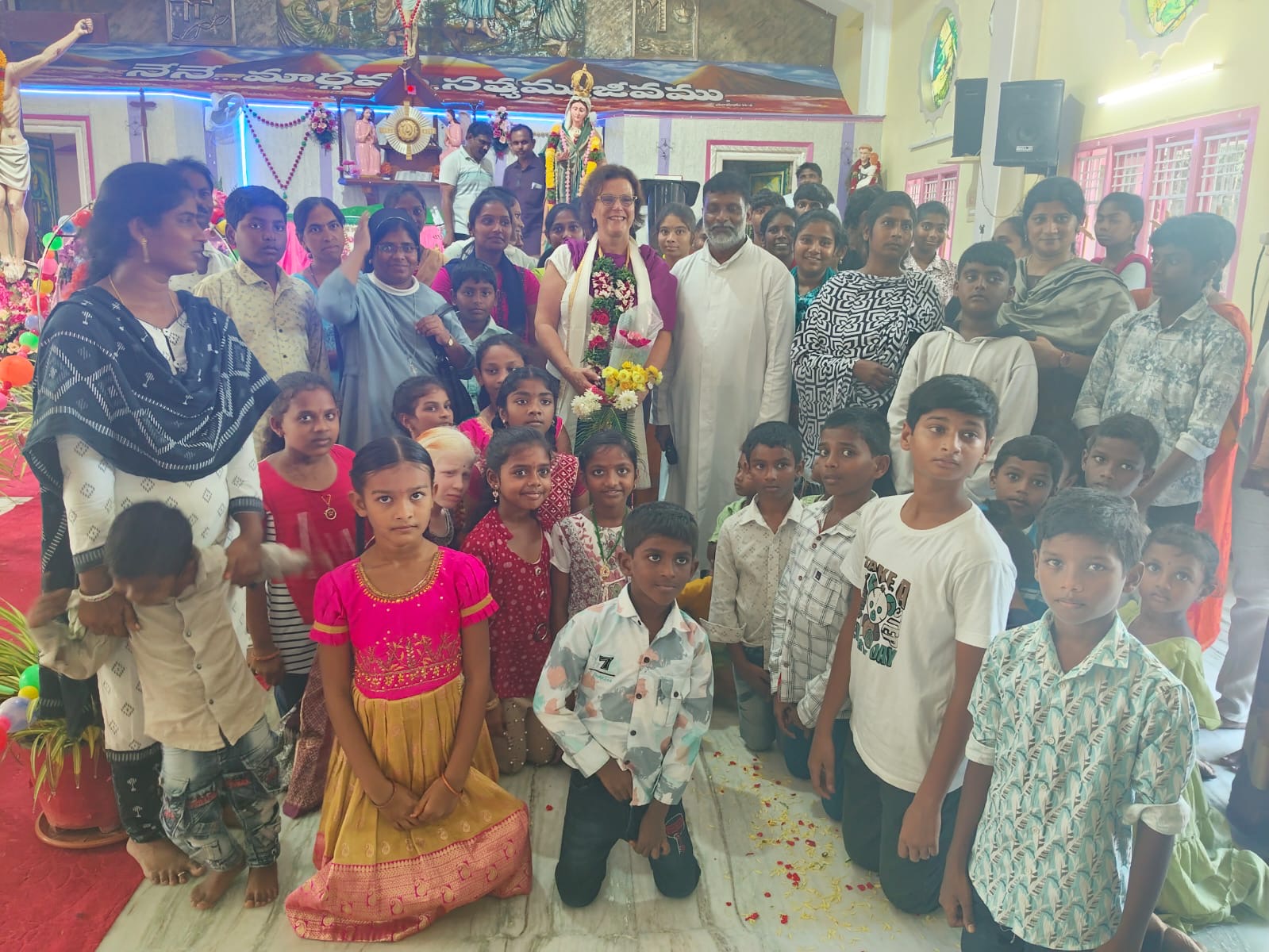 Wir haben eine einstündige Autofahrt zur Pfarrei Jaggayapeta gemacht, wo ich feierlich von den Kindern, Gemeindemitgliedern und Pfarrer Jayaraj empfangen wurde.